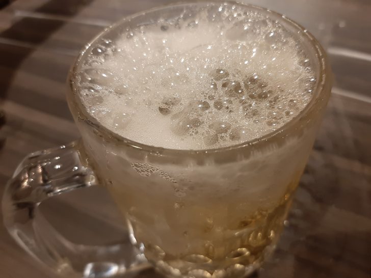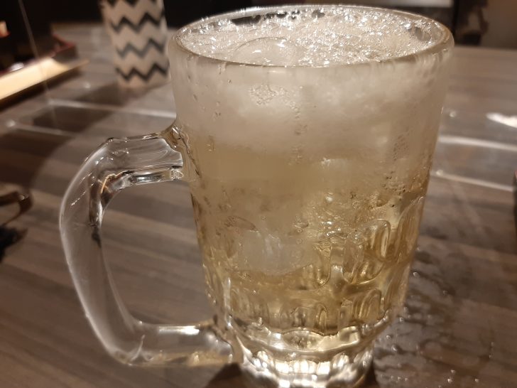 2杯目は、チューハイ、ハイボール、日本酒の中からハイボールを選択しました。ジムビームハイボールですが、炭酸が効いていて良いですね。