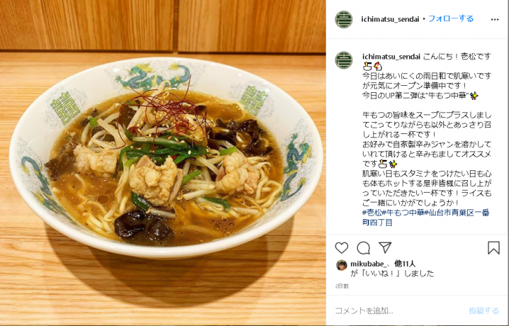 インスタに掲載されている『鳥中華』と『牛もつ中華』が、メインのようですね。