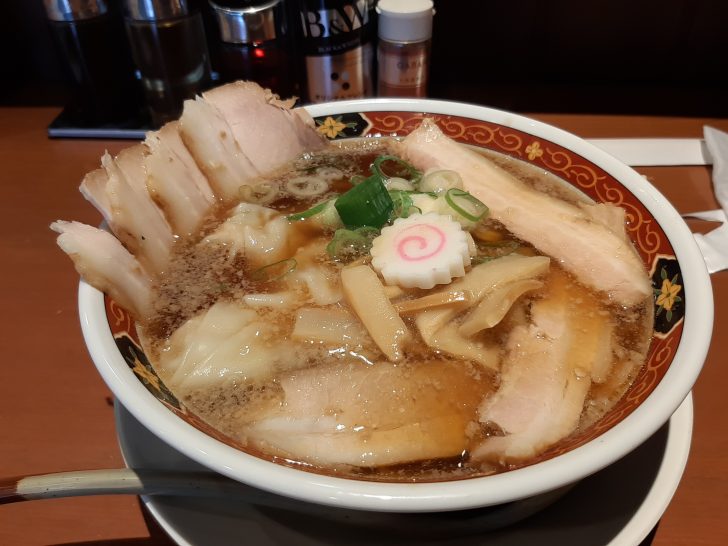 今回注文したのは、いわゆる全部載せの喜多方ラーメンワンタンチャーシューメン(醤油)を注文しました。今回はお店の方にもお勧めを聞いたのですが、醤油とのことだったので醤油を注文しました。