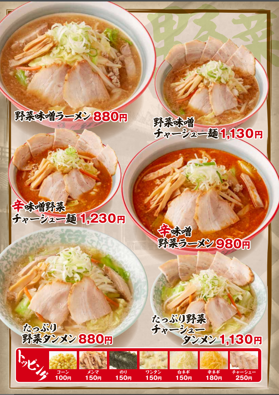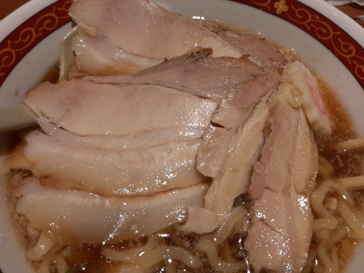 トッピングは、チャーシュー大4枚+小3枚、ワンタン5個、メンマ、ナルト、ねぎですね。