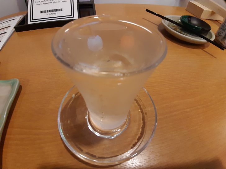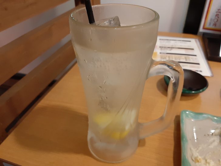 2杯目は、いつものレモンサワーを注文しました。190円と安いんですが、ジョッキで提供されて、レモンもしっかり入っていましたね。