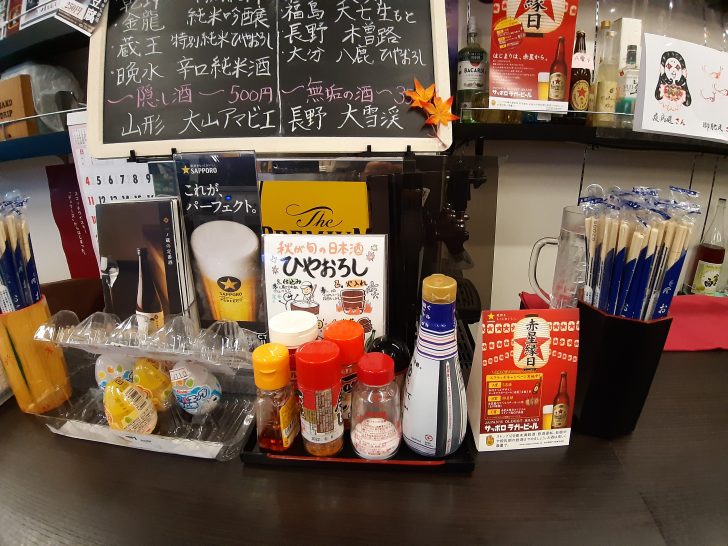 仙台駅東口より徒歩1分の一人で飲める角打ちのお店です。しかし角打ちというよりも、立飲み屋という雰囲気ですね。カウンターは7、8人、立ちテーブル席が3卓あります。自動券売機で、ドリンク、おつまみを購入するようになっています。おつまみは、枝豆、笹かま焼き、玉こん、いかの塩辛など。他に缶詰、さきいか、ナッツ類の渇き物などがあります。ビール生中(380円)、クラフトビール4種類(380円)、日本酒(今日のおすすめ:330円)、サワー(330円)、ハイボール(330円)。日本酒は、宮城の酒4種と県外4種の中から選べます。他に隠し酒1種(500円)、無垢の酒1種(350円)。日本酒は、ワイングラスで提供されるので、少しお洒落な感じがします。