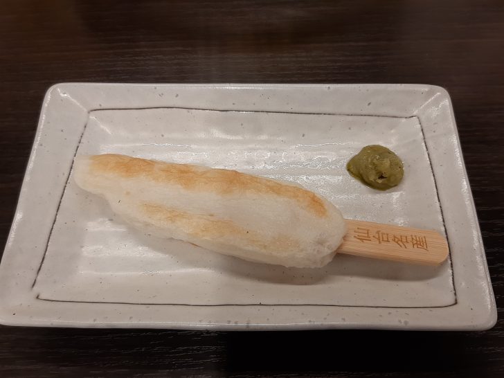 昼食にラーメンを食べて、あまり時間が経過していないので、ヘビーなおつまみは入りませんでした。安くてヘルシーな笹かまぼこを注文しました。