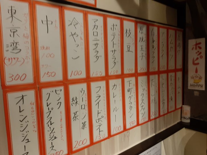 ホッピー(中)が100円なのも激安で嬉しいですね。他にこんな安い店を私は知りません。