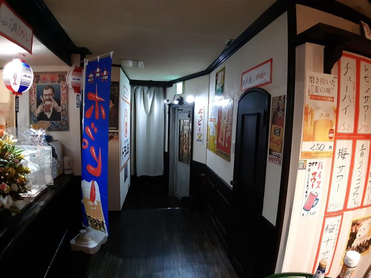 入口は看板とのぼりや花束などが飾られていて分かり易くなっていますね。ただ入口が狭いのと、中が見えないので入りにくいかも?