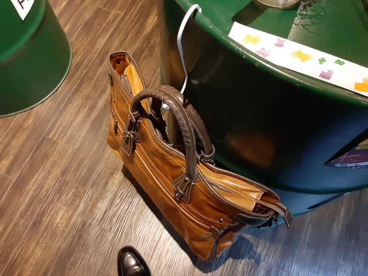 鞄などは、このようなS字フックでドラム缶に引っ掛けられます。