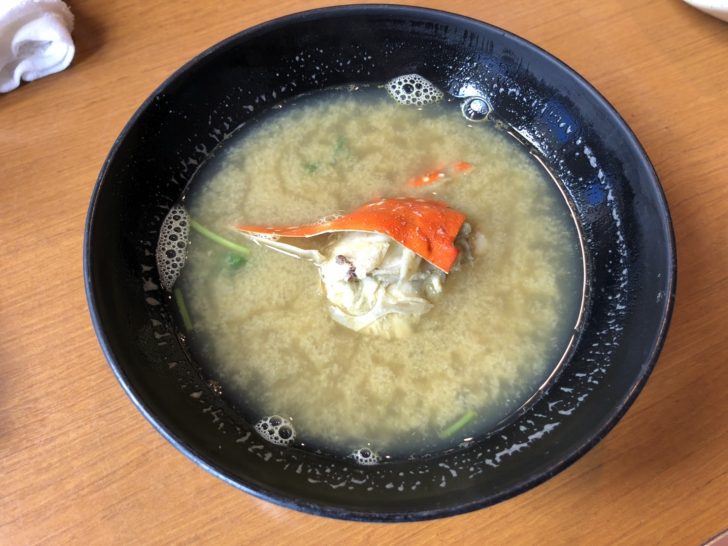 味噌汁もその日によって異なるようですが、この日は、カニ汁でした。食べログや他の方のブログを見ても、カニ汁の日も多いようです。ランチにカニ汁がセットになっているのは嬉しいですね。そして、多分宮城県産のワタリガニの味噌汁だと思いますが、美味し過ぎます。