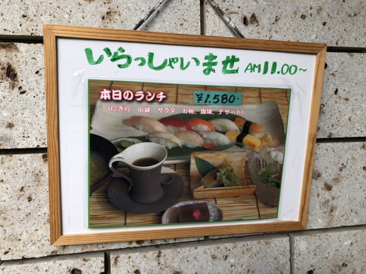 元々は普通の寿司店だったようで、夜営業もしていたようですが、現在は、昼のみの営業で、メニューも『本日の寿司ランチ』のみを提供するお店となっています。ネタの新鮮さと、小鉢、サラダ、味噌汁、コーヒー、デザートが付いて1580円(税込)とリーズナブルさが大人気です。