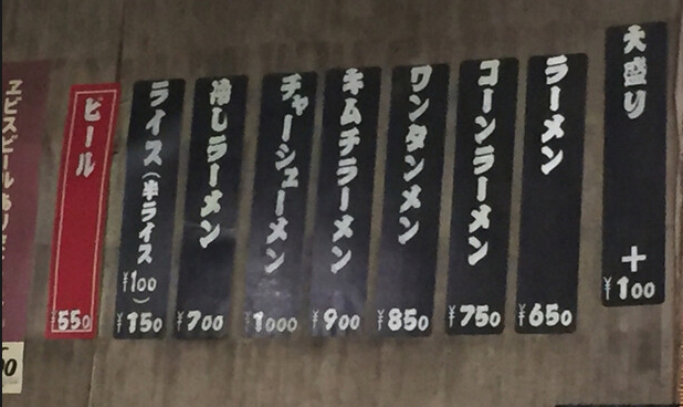 メニューはシンプルで、これだけですね。ラーメン¥650(税込)は、安いですね。ほとんどのお客さんは、ラーメンかワンタンメンを注文するようです。