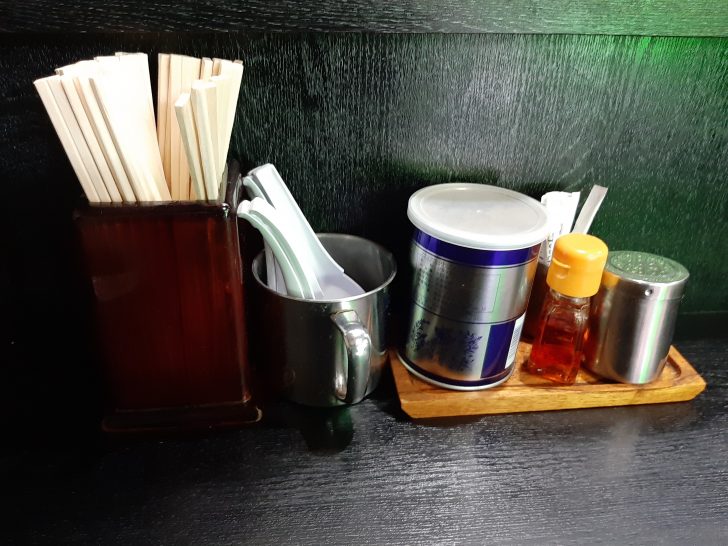 卓上調味料はブラックペッパー、ホワイトペッパー、ラー油のみです。