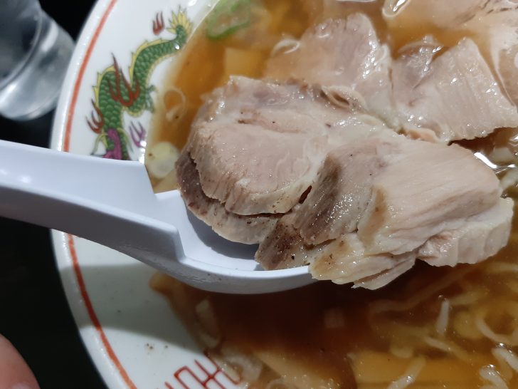 チャーシューは、豚ロースの大判で、厚いものが2枚も入っています。味付けは、薄めで丁度良い感じです。食感も柔らかくて、食べ応えがありますね。こんなチャーシューが入って650円は、コスパ最高ですね。