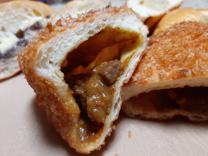 ゴロッと牛肉の辛口カレーパンは、カレーは少なめですが、確かに大きめの牛肉が入っていて美味しかったです。