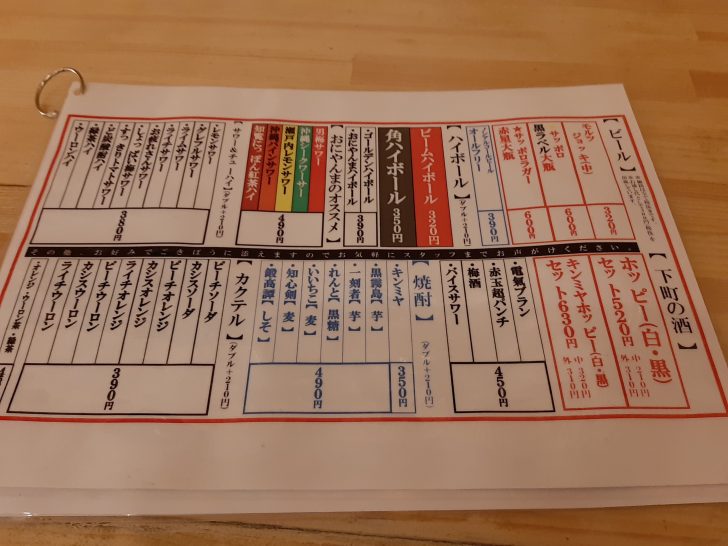 生ビール、ハイボールが安いですね。