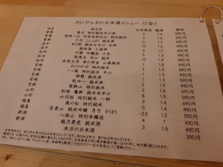 日本酒は種類が多く、(1合)としては安いですね。