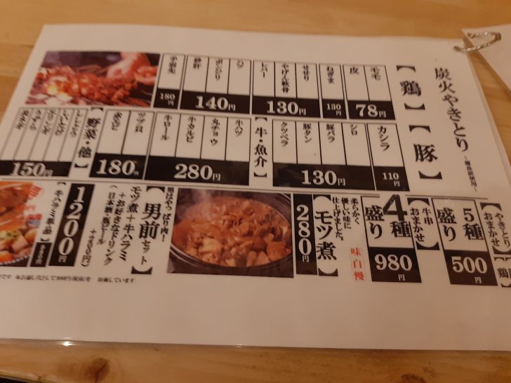 なんと炭火焼鳥は78円~です。また、味自慢のモツ煮も280円と安いですね。
