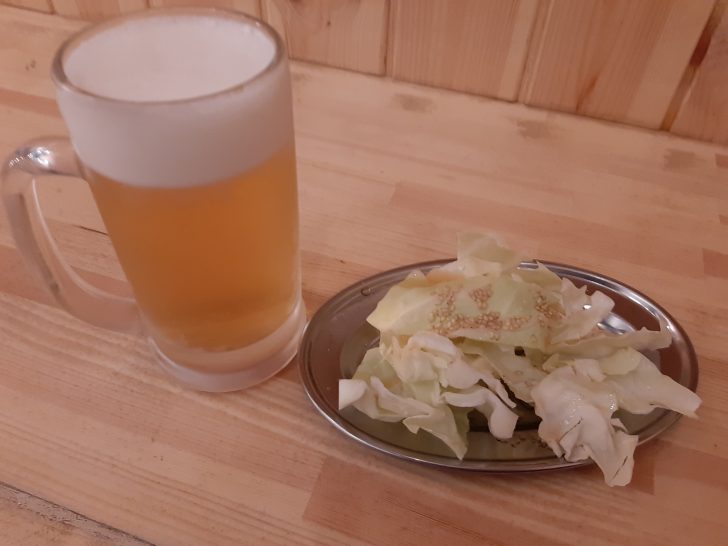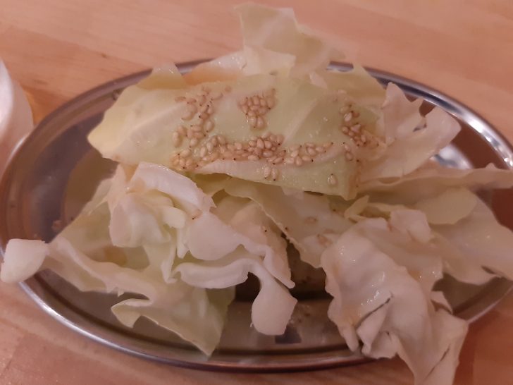 キャベツはお通しとして提供されました。(300円)取られます。キャベツには胡麻と塩だれが掛けてあり、美味しく頂けました。