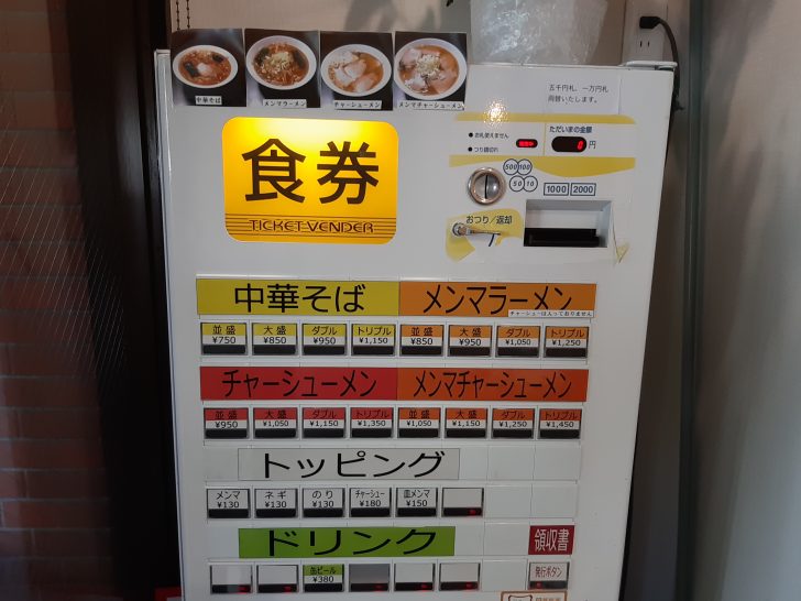 - トッピング(メンマ:130円)、(ネギ:130円)、(のり:130円)、(チャーシュー:180円)、(皿メンマ:150円)