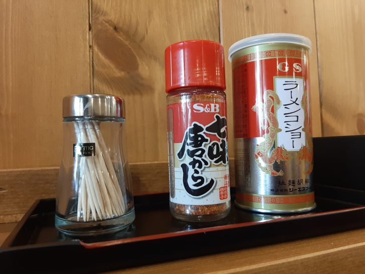 卓上調味料は、ラーメンコショーと七味唐辛子だけですね。