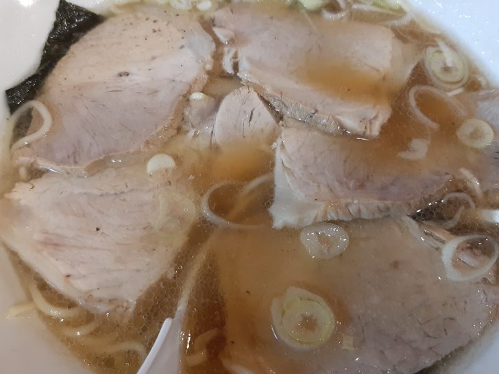 トッピングはチャーシュー5枚、メンマ、海苔、ネギですね。