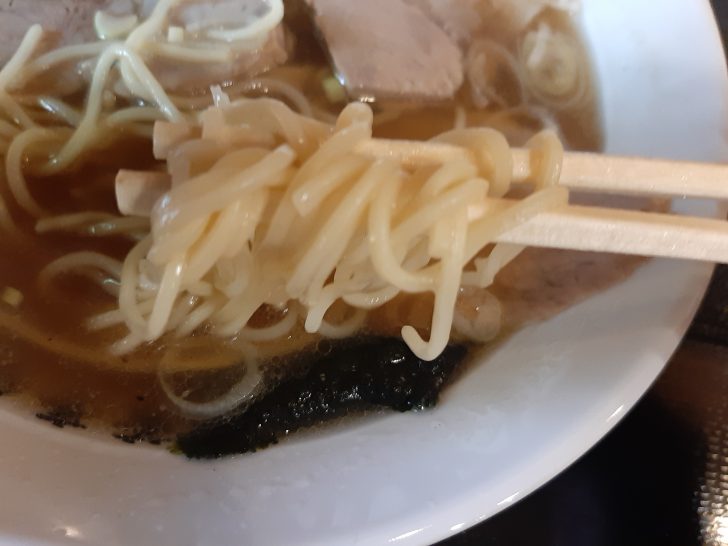 麺は中細のストレート麺で、硬めで食べ応えのある美味しい自家製麺です。