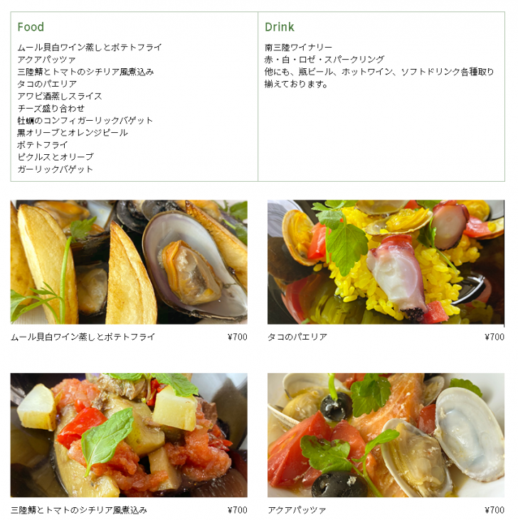 『南三陸オープンテラスさんさんバル』のメニュー
