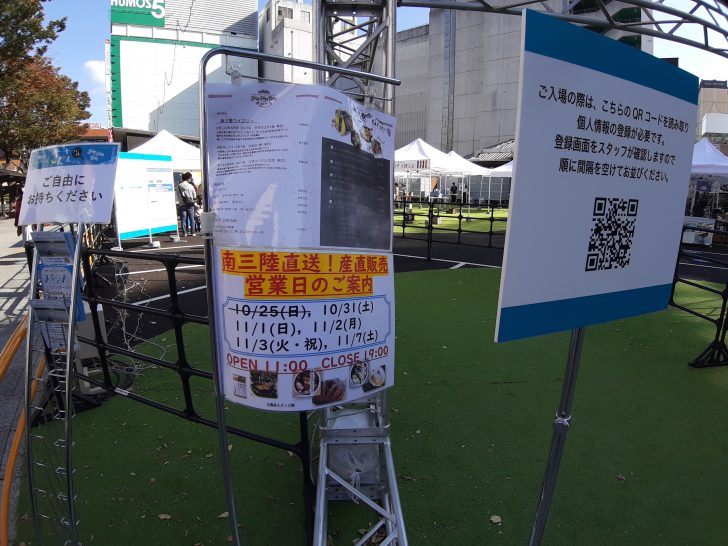 『南三陸オープンテラスさんさんバル』が仙台駅前EDENの隣のEVENT PARKで10/25~11/7の期間限定で開催されています。近くを通りかかったので、様子を紹介したいと思います。