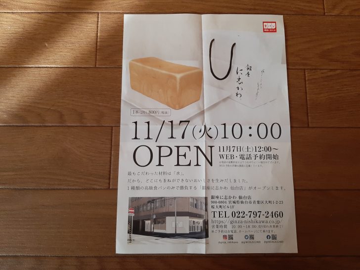 高級食パン店『銀座に志かわ』仙台店が11/17にオープン予定!