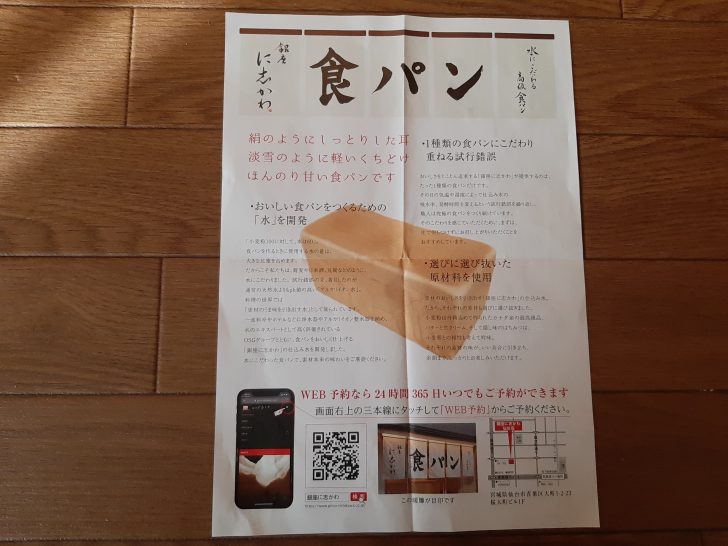 『銀座に志かわ』仙台店のメニューは食パン1種類のみになります。