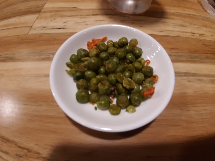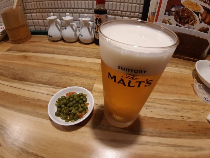 突き出しは辛いグリーン豆でした。