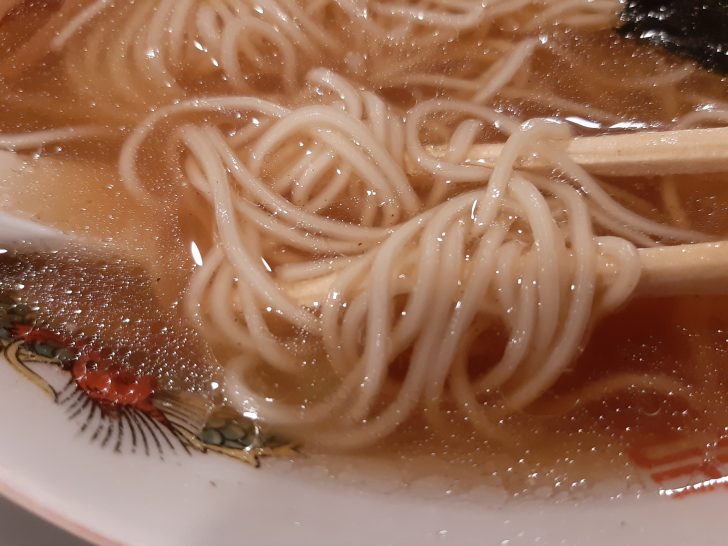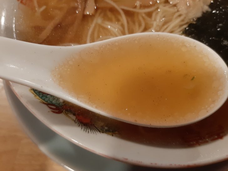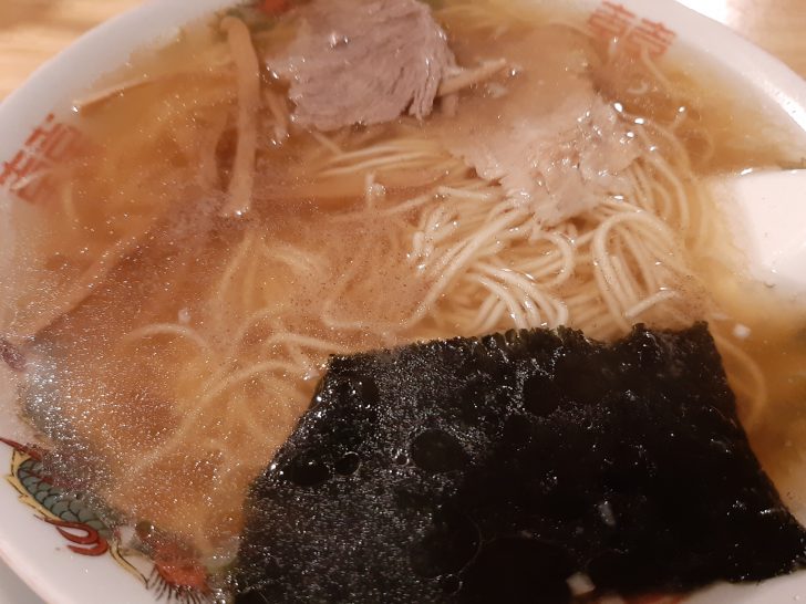 トッピングは、チャーシュー、メンマ、のり、ねぎとシンプル。小さめの丼にスープが並々と入っているのが良いですね。