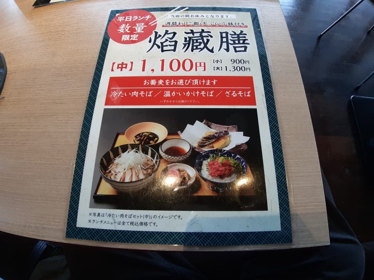 平日限定の「焔藏膳」が、リーズナブルで美味しそうなので、注文しようと思いましたが、当面の間お休みとなっているようなので注文できませんでした。残念です。