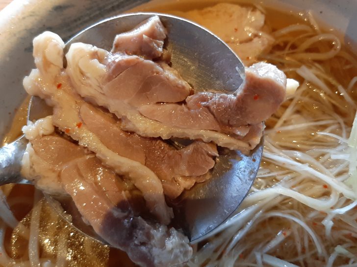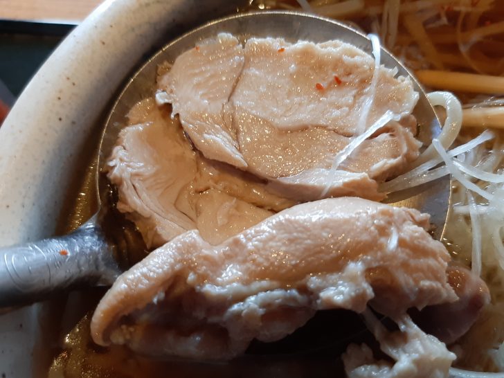 具材は、鶏肉(親鳥3枚+若鶏3枚)と白髪ねぎがたっぷりですね。