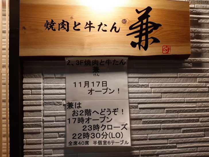 2F/3Fは、11/17に『焼肉と牛たん兼』としてリニューアルオープン