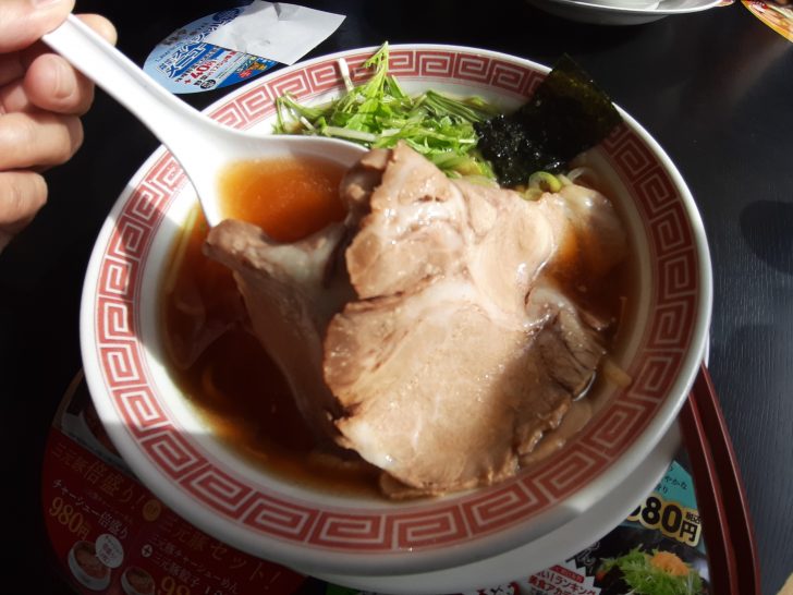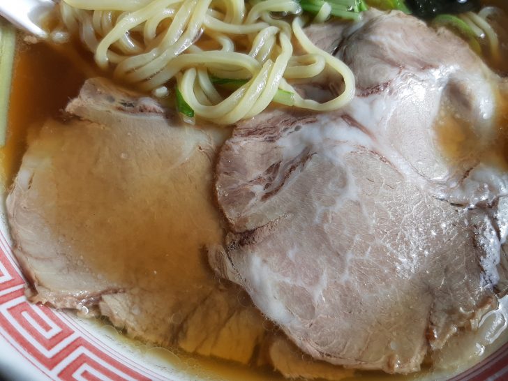 チャーシューは大きいですが、薄めです。しかし、三元豚チャーシューは、これまでの幸楽苑のチャーシューと異なり、しっかりした肉の味がして、さすが三元豚と思える美味しさが感じられました。
