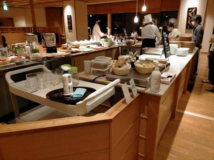 朝食は従来とほぼ同じようなビュッフェスタイルで、美味しい料理がたくさん提供されます。洋食と和食の両方ありでした。朝食でも玉子料理などは、シェフが作りたてを提供してくれます。やはり野菜中心の料理はヘルシーで美味しいですね。