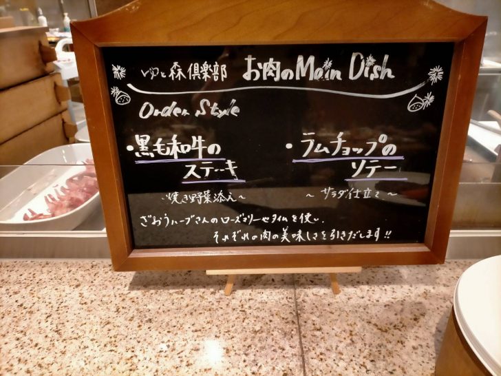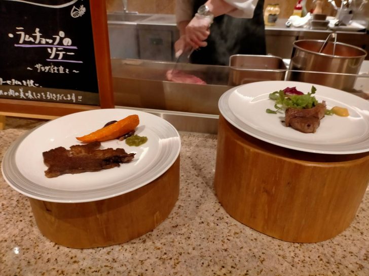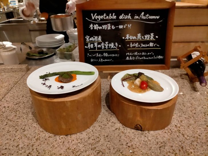 こちらで肉料理・魚料理・野菜料理の出来立てを提供してくれます。