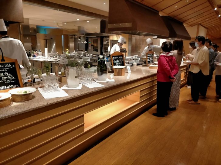 『ゆと森倶楽部』では、新型コロナの感染が問題となる前は、新鮮な野菜をメインにした沢山の料理を自分の好きなだけ取ることができるビュッフェスタイルとなっていました。また、アルコール飲料も含むドリンク類もセルフスタイルで取りに行く、飲み放題となっていました。しかしながら、新型コロナの感染防止の為、ビュッフェスタイルができなくなりました。そこで、新しい食事の提供スタイル(オリジナルプリフィックススタイル)に移行しています。
