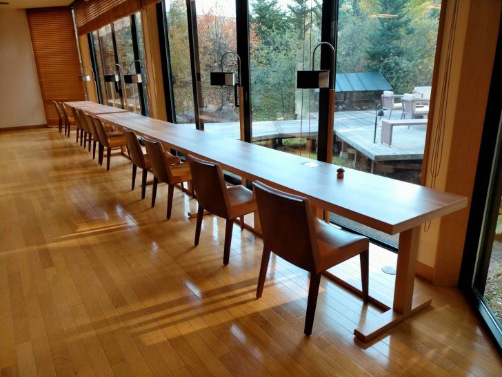 テーブル席はMAX4人掛けに変更されていました。また、外を見ながら食事できるような配置のテーブルもありました。2人の場合は利用しやすいですね。