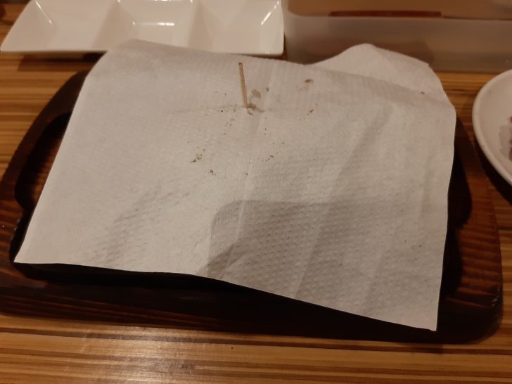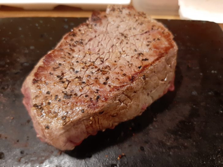 10分程度でステーキが提供されました。キッチンペーパー?で蓋がされているのは良いですね。