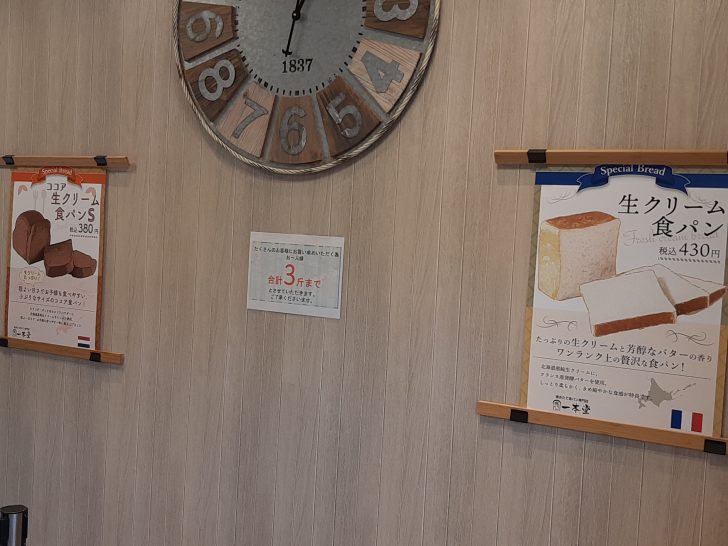『一本堂の』の良い所は、食パンが1斤で購入できるところと、食パンの種類が多いところですね。なので、1斤づつ色々な種類の食パンを購入できるところが嬉しいですね。新しいメニュー、季節限定メニューが発売されるようなので、時々は訪問したいですね。