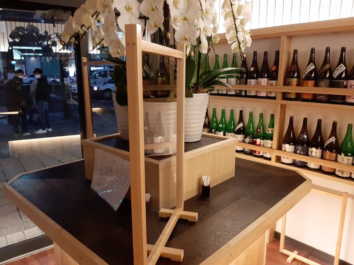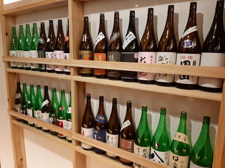 日本酒の一升瓶がたくさん飾られていますが、日本酒メニューにはないものがほとんどです。