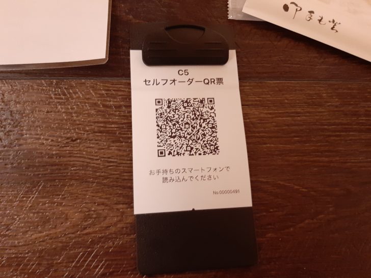 このお店で面白いのは、このセルフオーダーQR票を使用したスマホによるオーダーシステムが採用されています。席につくと下記のセルフオーダーQR票が渡されます。C5というのが、席番号となります。スマホでQR票を読み取ると、ドリンク・おつまみメニューが表示されるので、そこから注文できます。