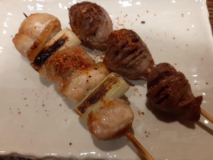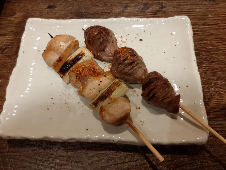 最初のおつまみは、焼鳥(砂肝【150円】、ねぎま【190円】)を注文しました。