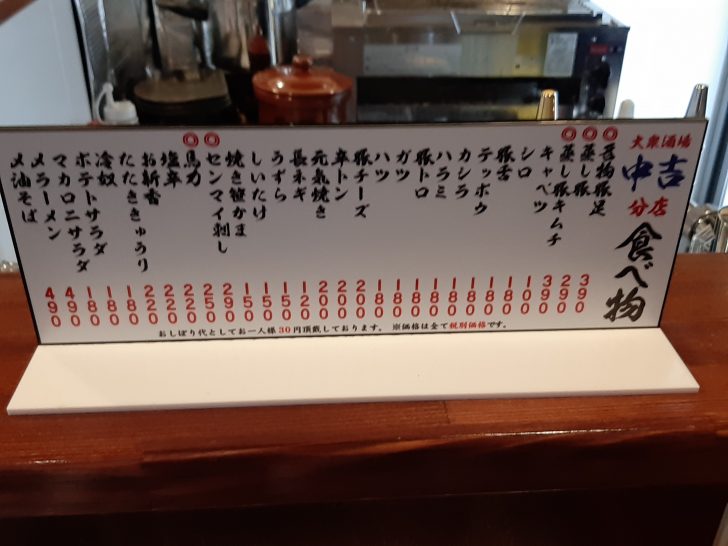 2020年12月18日にオープンした立飲みの店、大衆酒場『中吉』分店に行ってみたので紹介します。