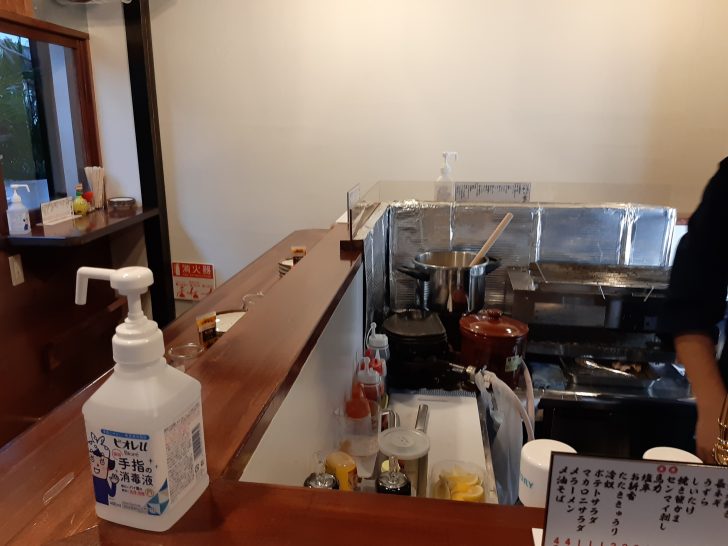 大衆酒場『中吉』分店の内観は、本店と同じような造りになっています。コの字型のカウンターになっています。他には、窓際に1席あります。ただ、本店のようなアクリル板の仕切りはありませんでした。また、テレビも今はないようですが、近々設置すると店主さんは言ってました。
