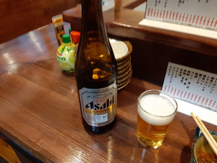 2杯目は瓶ビール中瓶(アサヒのスーパードライ)を注文しました。ドリンクメニューは、全体的に安めですが、一番お得なのは、瓶ビール中瓶【390円】ですね。お得なので、すごく売れているとのことですが、利益が少ないと、店主さんが言ってました。