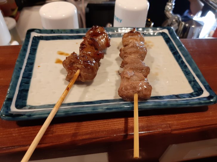 次は、焼きとんを食べたかったので、おすすめを聞いたら、ハツ、カシラ(【180円】×2)とのことだったので、それを注文しました。焼き方も丁度良くて美味しかったですね。他にも豚チーズ、元気焼きもおすすめとのことです。