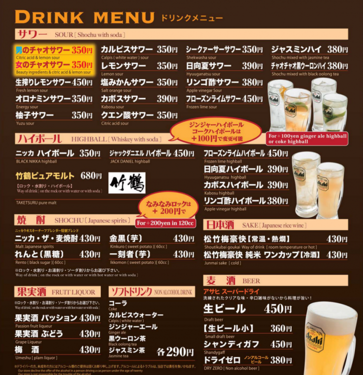 今回お気軽セット【1300円】+追加の日本酒【430円】で合計【1730円】となりました。お気軽セットは単品で注文しても【1400円】なので、あまりお得ではないですね。チャオチャオ餃子は美味しかったのですが、ちょい呑みとしては、おまりお得感はありませんでした。おつまみは、リーズナブルなので、たくさん飲む方は、飲み放題にすれば、お得に飲めると思います。