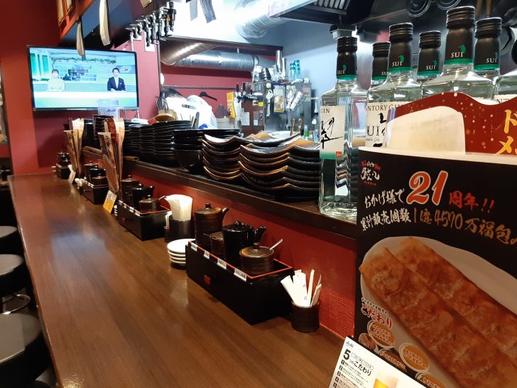 カウンター5席、テーブル席は21席程度とコロナ感染防止の為、ソーシャルディスタンスをおこなっています。