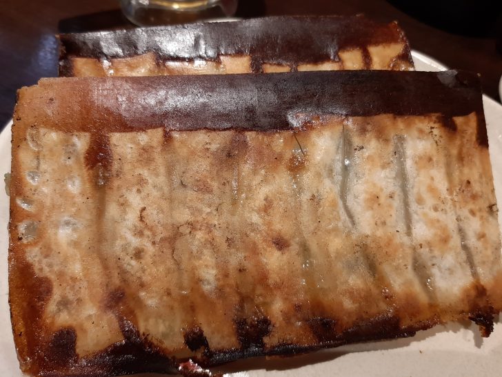 お待ちかねのチャオチャオ餃子が提供されました。一口餃子だけにひとつひとつは小さいですね。しかし、羽根つき餃子のようにつながっているので、分離しながら食べないといけません。1枚8個なので2枚で16個になります。